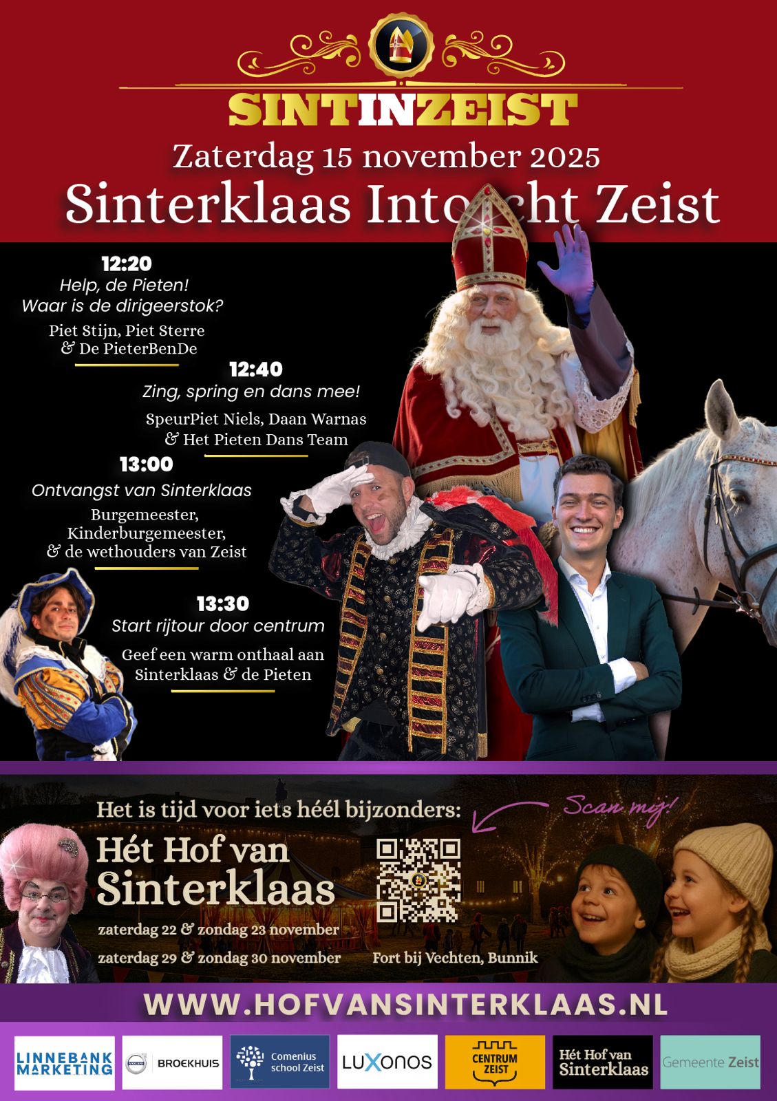 Vanaf 13.30 uur trekt Sinterklaas met zijn Pieten in een feestelijke parade door de winkelstraten van Zeist. ✨